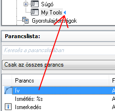 A Parancslista területről húzzon egy parancsot a <fájlnév> testreszabási beállításai ablaktáblán a legördülő menübe vagy a legördülő menü alatti részre.