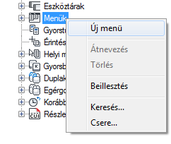A Testreszabás lap <fájlnév> testreszabási beállításai ablaktábláján kattintson a Menük csomópont melletti pluszjelre (+) a csomópont kibontásához.
