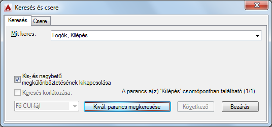 Egy üzenet jelenik meg, amely leírja a parancs találati helyét: a pontos helyét a Testreszabási beállításai vagy a Tulajdonságok ablaktáblán és a példányainak számát.