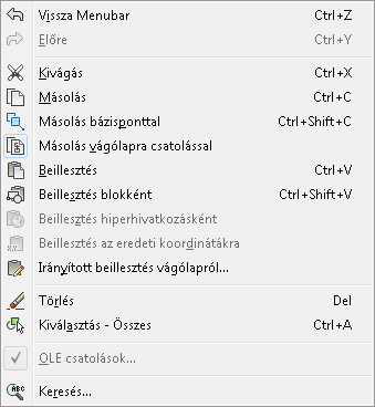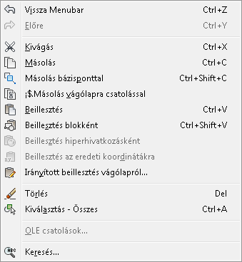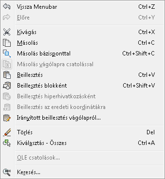 A következőben egy példa látható a Szerkesztés menüben található, pipával megjelölt OLE csatolások menüelemről, valamint a Másolás vágólapra csatolással menüelem képéről, amely egy kerettel van kiemelve.