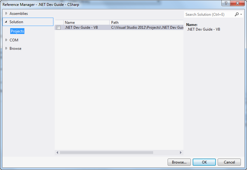 When you add a project to a solution, a new node for the project is displayed in the Solution Explorer. This node is titled the same as the project that was referenced. After a project is added, it must be referenced to the project using the Add Reference dialog box.