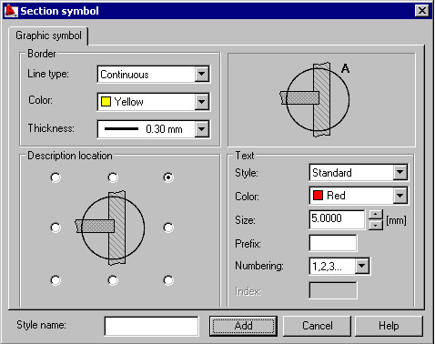 Use this dialog to define a new style or modify an existing style of a detail. To access this dialog, click New or Modify in the Styles of symbols dialog when a detail symbol style is selected in the Symbol field.