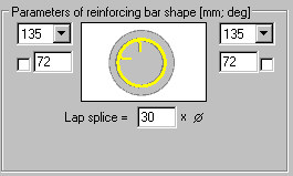 - In the Parameters of reinforcing bar shape field - anchor parameters for reinforcing bar ends, i.e. hook angle, length and lap splice length. You can lock a hook length by selecting the option next to the edit field for defining a hook length (