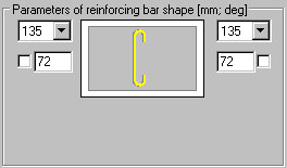 - In the Parameters of reinforcing bar shape field - anchor parameters for reinforcing bar ends, i.e. hook angle and length; you can lock a hook length by selecting the option next to the edit field for defining a hook length (
