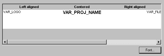 In order to change the layout of the printout header, select the table field you want to change, and then select a value from the list. To select a font for a particular field, position the cursor in the field, and click Font. In the dialog that opens, you can choose the font to be applied.