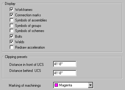 For Marking of machinings, select a color of machinings made in elements of a structure model.