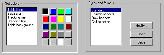 After you select Colors and formats from the selection tree in the left part of the Table printout manager dialog, the options shown below display on the right.