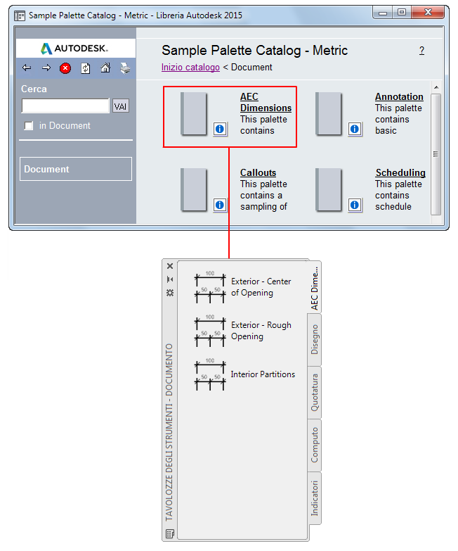 Suggerimento: Se si lavora su un progetto di AutoCAD Architecture, è possibile generare un catalogo di strumenti basato sugli stili standard definiti per il progetto.