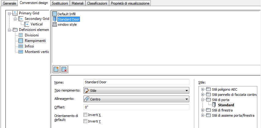 Una definizione di infisso | In Definizioni elementi, fare clic su Infissi. Nel riquadro destro, selezionare la definizione di infisso da cambiare e modificarla. |