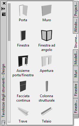 Le tavolozze personalizzate create dall'amministratore CAD o da altri utenti possono anche contenere strumenti Apertura con proprietà personalizzate per i propri progetti o standard di lavoro.