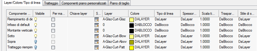 Per specificare le proprietà di uno o più piani di taglio per uno stile di facciata continua, attenersi alla procedura indicata di seguito. Le proprietà di visualizzazione del piano di taglio si applicano solo per visualizzare le rappresentazioni, ad esempio Piano, utilizzate nella vista dall'alto (vista piana) di un disegno.