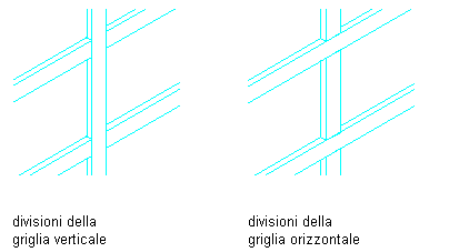 Le linee orizzontali e verticali della griglia di layout 2D definiscono le divisioni delle griglie della facciata continua. Ai montanti verticali, alla cornice e alle celle della griglia sono assegnate definizioni di default.