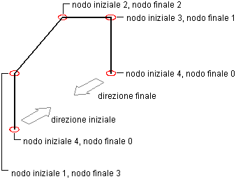 Assegnare forme all'elemento del supporto rigido relativo all'inizio dell'elemento. Il punto iniziale viene definito come Nodo 0. Il primo vertice dell'elemento costituisce il Nodo 1, il vertice successivo il Nodo 2 e così via, fino al punto finale dell'elemento, definito come nodo finale.