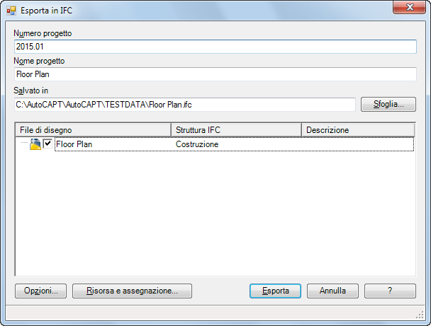 • In Nome progetto, se necessario, modificare il nome. Per default, viene visualizzato il nome del disegno esportato.