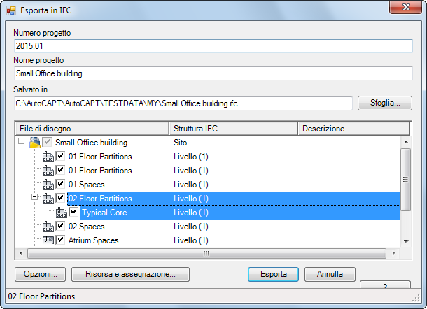 Se i disegni sono stati assegnati ai livelli come parte del progetto di AutoCAD Architecture, nella struttura IFC viene visualizzata per default l'etichetta corrispondente. Altrimenti, saranno associati per default al Livello 1.