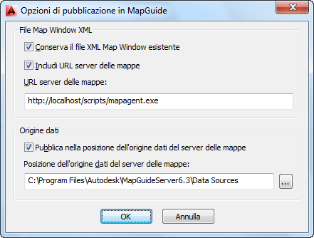 Per pubblicare dati in MapGuide