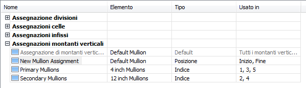Nell'elenco delle assegnazioni di montanti verticali verrà visualizzata una nuova assegnazione.