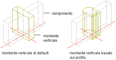 Allineamenti dei riempimenti con montanti verticali di default e montanti verticali basati su un profilo