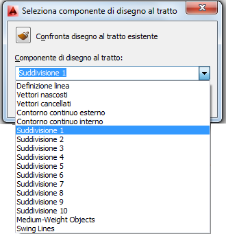 (Confronta disegno al tratto esistente) e selezionare il disegno al tratto del prospetto con il componente di visualizzazione che si intende confrontare.