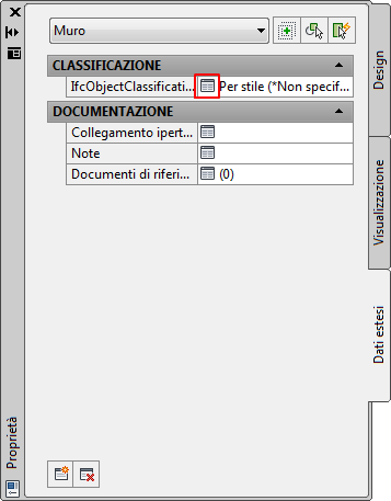 - Nella tavolozza Proprietà, scheda Dati estesi, gruppo Classificazione, fare clic su ifcObjectClassification e selezionare la classificazione.