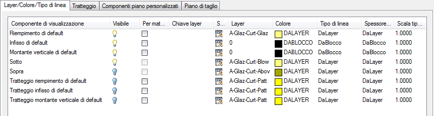 Use this procedure to specify the properties of one or more cut planes for a curtain wall unit style. Cut plane display properties apply only to display representations, such as Plan, that are used in Top view (Plan view) of a drawing.