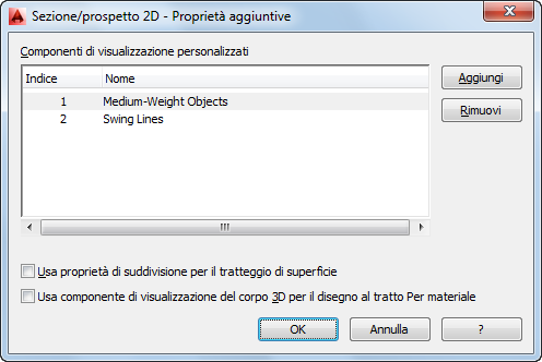 - Per specificare le proprietà di visualizzazione per ogni componente aggiunto, fare clic sulla scheda Layer/Colore/Tipo di linea, selezionare il componente e modificare i valori nella colonna.