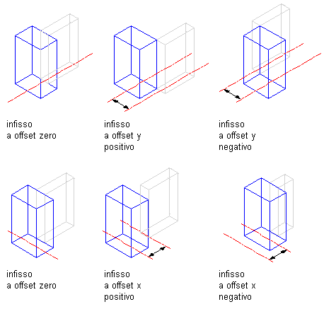 Y | In vista piana, un valore di offset positivo in direzione Y sposta il bordo dell'infisso sopra la linea di base, mentre un valore negativo sposta l'infisso sotto la linea di base. |