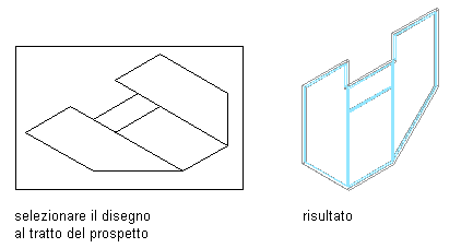Suggerimento: Se il disegno al tratto viene eseguito sul piano XY in vista piana e si accetta la linea di base di default, l'unità muro non portante risultante viene visualizzata come se fosse proiettata nella direzione Z.