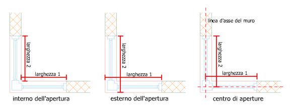- Centro dell'apertura. Misurare la finestra ad angolo da un'estremità del muro all'intersezione tra entrambi i muri in corrispondenza dell'angolo di muro.