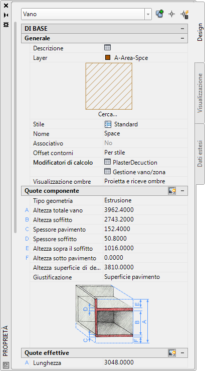 - Definire una formula per il calcolo del valore dell'area base o del perimetro base del vano.