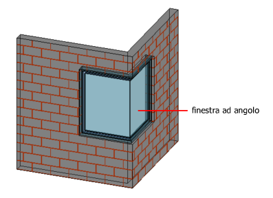 Una finestra ad angolo si estende da un muro all'altro dopo l'inserimento in corrispondenza di una giunzione di angoli idonei di due muri. Una giunzione di angoli idonei è caratterizzata da: