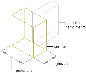 Suggerimento: Per rimuovere il bordo dell'infisso in modo che il riempimento occupi lo spazio dell'infisso, creare una definizione di infisso con la larghezza e la profondità impostate su zero. Assegnare quindi la definizione al bordo dell'infisso che si desidera rimuovere. Questa operazione è necessaria per il riempimento