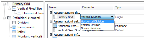 Una volta definita una divisione, è possibile assegnarla alla griglia principale o alle griglie nidificate. Queste vengono create selezionando Griglia nidificata come assegnazione delle celle.