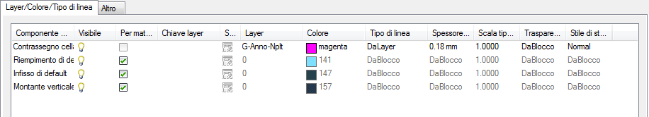 Componenti di visualizzazione di default per i pannelli facciata continua
