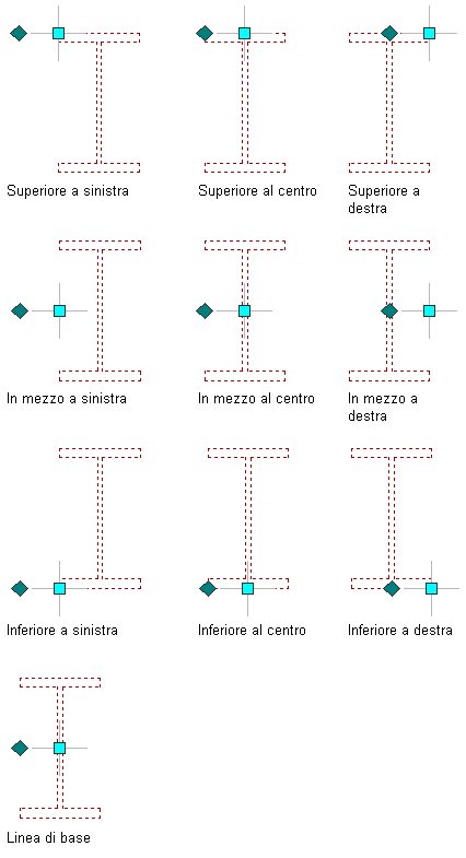 Per modificare la giustificazione di un elemento strutturale, attenersi alla procedura indicata di seguito. La giustificazione posiziona la forma di un elemento strutturale rispetto al relativo asse estruso. La modifica della giustificazione di un elemento esistente sposta l'elemento e può influire sulla modalità con cui l'elemento si relaziona ad altri oggetti, ad esempio il modo in cui una colonna si posiziona rispetto ad una griglia di colonne quando è ancorata alla stessa.