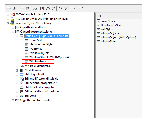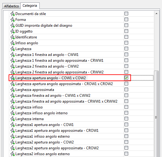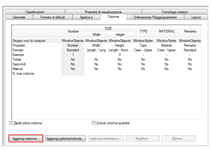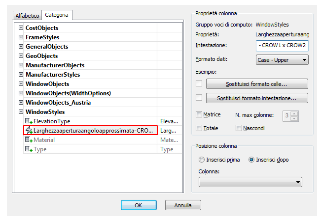 Per modificare le proprietà automatiche generate nel computo della finestra, effettuare le seguenti operazioni: