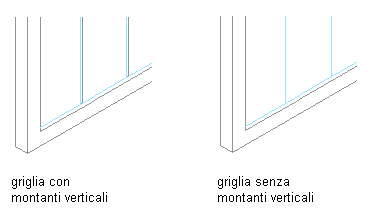 Per rimuovere un montante verticale da un assieme porta/finestra, attenersi alla procedura descritta nella presente sezione. È possibile creare una definizione di montante verticale con larghezza e profondità zero. I riempimenti adiacenti si espanderanno fino a riempire lo spazio occupato dal montante verticale. Questo è un metodo efficace per rappresentare le vetrate continue.