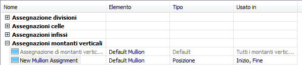 Nell'elenco delle assegnazioni di montanti verticali verrà visualizzata una nuova assegnazione.