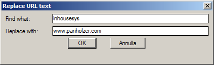 È possibile specificare un indirizzo URL completo o parziale. Ad esempio, effettuando un'unica operazione è possibile sostituire con il dominio .net tutti i riferimenti a collegamenti ipertestuali con dominio .com oppure sostituire un URL interno con un URL di un sito Web esterno.