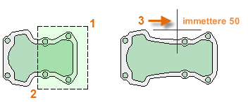 Per il comando TAGLIA viene seguita la stessa procedura, ad eccezione del fatto che, quando si selezionano gli oggetti da tagliare, vengono in realtà selezionate le parti da rimuovere.