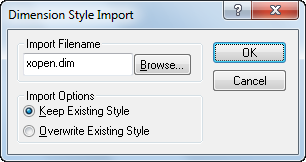 | Import Filename | Specifica il file di testo ASCII da importare. Per default, l'estensione del file è DIM e il file deve essere nel formato generato dall'Express Tool DIMEX. Tutti gli stili di quota contenuti nel file selezionato vengono importati nel disegno corrente. Vengono importati anche gli stili di testo. |