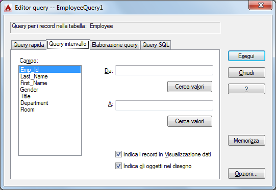 Apre la finestra di dialogo Opzioni di visualizzazione dati e di query.