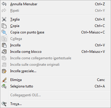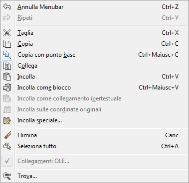 Di seguito è illustrato un esempio della voce di menu Collegamenti OLE del menu Modifica contrassegnata da un segno di spunta e dell'immagine della voce di menu Collega evidenziata da un bordo attorno ad essa.
