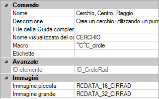 2. Nel campo Descrizione del riquadro Proprietà, digitare il testo della descrizione comandi per il comando selezionato.