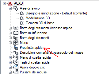 - Nella scheda Personalizza, nel riquadro Personalizzazioni in <nome file>, fare clic con il pulsante destro del mouse su Proprietà rapide.