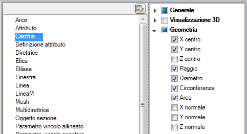 Se un tipo di oggetto è selezionato, le relative proprietà vengono visualizzate nella tavolozza Proprietà rapide quando viene selezionato un oggetto dello stesso tipo e quando QPMODE è impostata su 2 e PICKFIRST è attivata. Eliminare il segno di spunta accanto ad un tipo di oggetto per rimuovere il tipo di oggetto selezionato dalla tavolozza Proprietà rapide.
