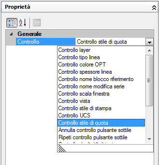 - Nella casella Controllo del riquadro Proprietà, fare clic sulla freccia rivolta verso il basso per visualizzare un elenco di tutti i controlli della barra degli strumenti disponibili.
