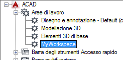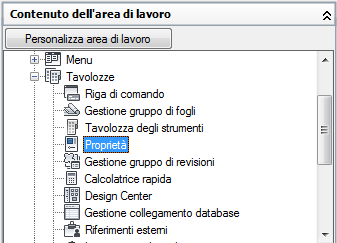 Nella scheda Personalizza, nel riquadro Personalizzazioni in <nome file>, espandere Aree di lavoro e selezionare l'area di lavoro contenente la tavolozza che si desidera modificare.