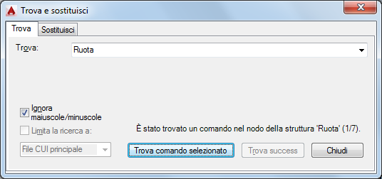 Viene visualizzato un messaggio con i dettagli della posizione del comando, la posizione esatta del comando nel riquadro Personalizzazioni in o nel riquadro Proprietà e il numero di istanze del comando.