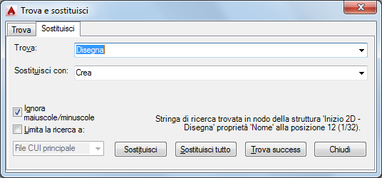 Viene visualizzato un messaggio con i dettagli della posizione della stringa di ricerca e il numero di risultati generati dalla ricerca.